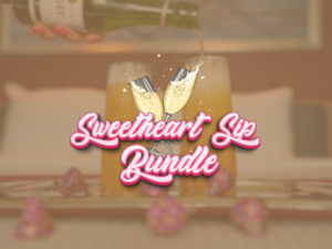 Add 2 small champagnes, 2 orange or pineapple juices, 2 reusable champagne flutes, Valentine’s Day chocolate candy and a reusable tote for $30! See the front desk for more information.